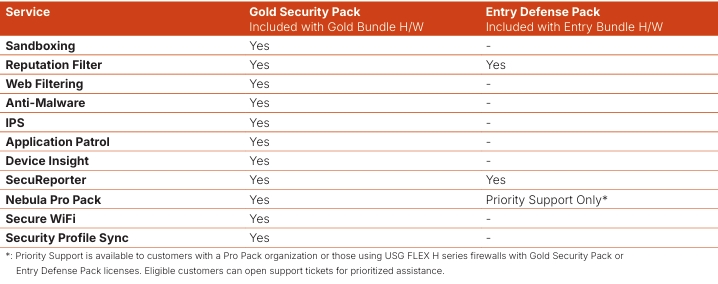 The USG FLEX H series provides an indispensable feature set to perfectly fit small business requirements as well as to gain essential security services needed to protect against cyberattacks. Nebula Control Center (NCC) offers multiple subscription options to meet customers’ needs. The Nebula Plus/Professional Pack give you peace of mind at more control over your network updates and visibility, or even the most advanced management of cloud networking.